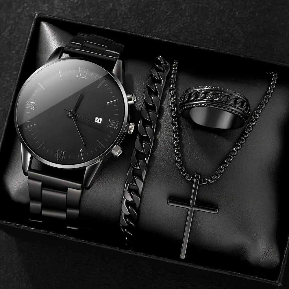 | Product Name | 4 pieces/set men's black minimalist quartz watch set |